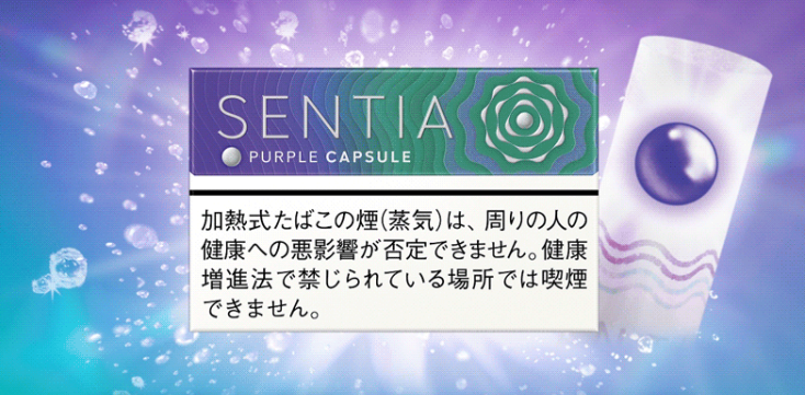 センティア・パープル・カプセル 新発売! アイコス 大浦商店からのお知らせ 2026/04/05更新 センティア初のカプセル搭載スティック! カプセルをつぶすと、ブルーベリーの香りが弾ける、 爽快メンソールです。
